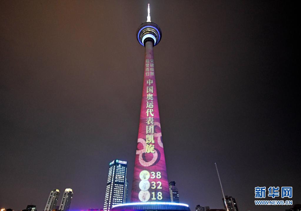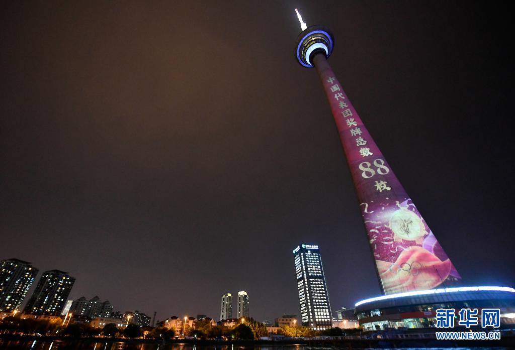 当晚,天津市地标建筑天塔被点亮,致敬刚刚结束东京奥运会之旅的中国体育代表团。