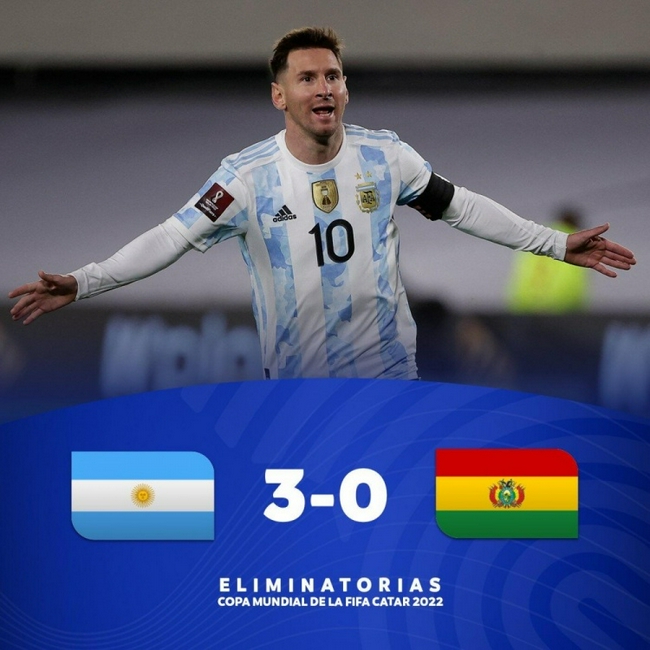 中新网客户端9月10日电 北京时间10日上午,阿根廷在2022年世界杯预选赛南美区比赛中3:0大胜玻利维亚,梅西上演帽子戏法,并以79粒进球打破贝利保持的南美球员国家队进球纪录。