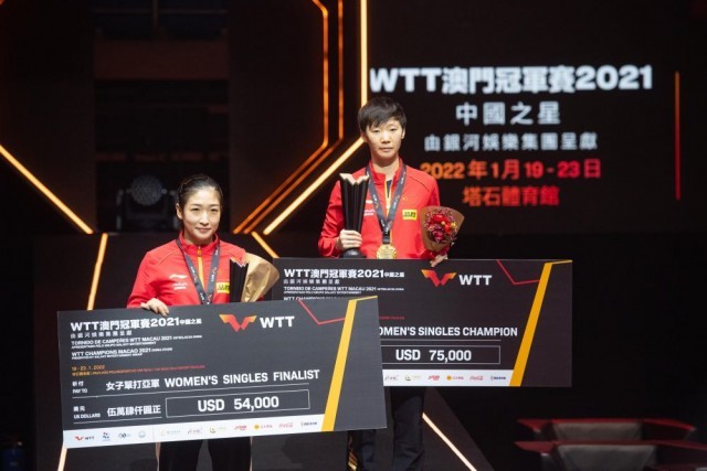 新华社澳门1月23日电(记者李寒芳)乒乓球“WTT澳门冠军赛2021中国之星”23日在澳门收官,王楚钦夺得男单冠军,王曼昱获女单冠军。