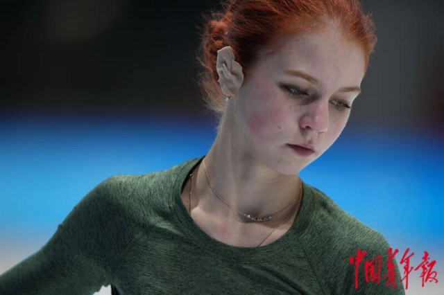 2月9日,北京首都体育馆,俄罗斯花样滑冰选手安娜·谢尔巴科娃在训练中。中青报·中青网记者 李隽辉/摄