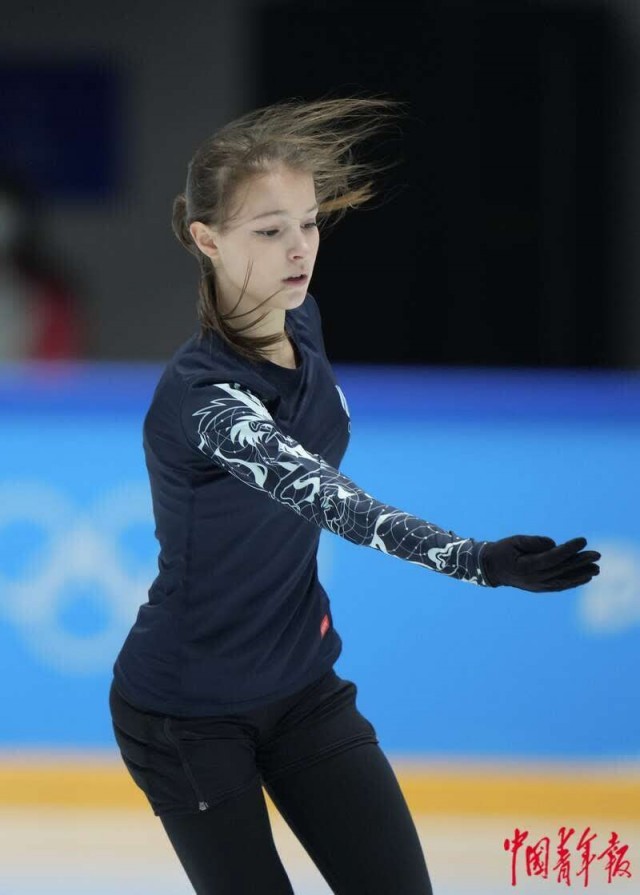 2月9日,北京首都体育馆,俄罗斯花样滑冰选手亚历山德拉·特鲁索娃在训练中。中青报·中青网记者 李隽辉/摄
