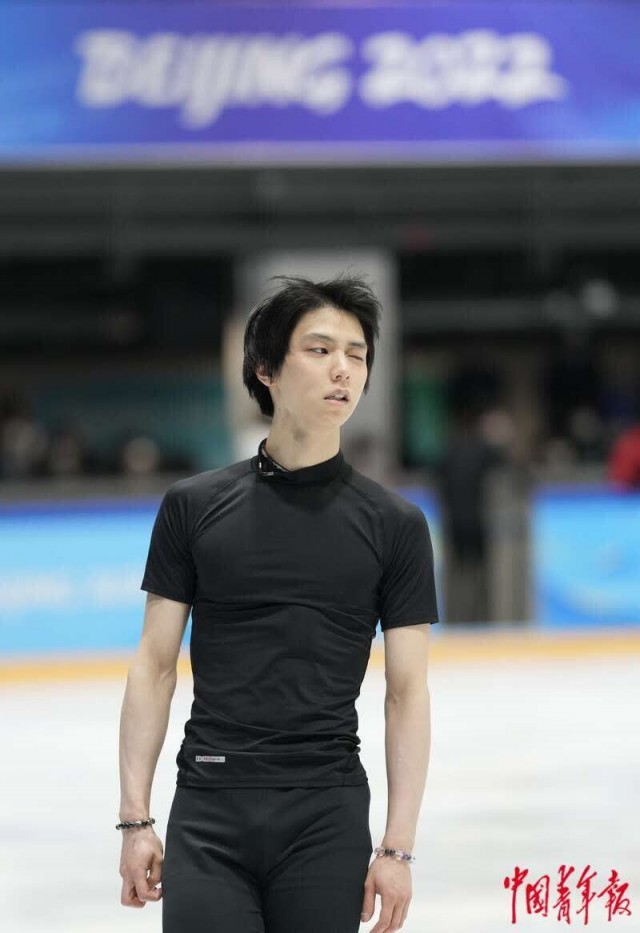 2月9日,北京首都体育馆,日本花样滑冰选手羽生结弦在训练中。他将参加2月10日上午的男单自由滑决赛,在24名选手中第17个出场,向冬奥三连冠和阿克塞尔四周跳发起冲击。中青报·中青网记者 李隽辉/摄