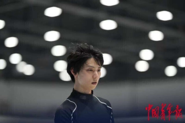 2月9日,北京首都体育馆,日本花样滑冰选手羽生结弦在训练中。中青报·中青网记者 李隽辉/摄