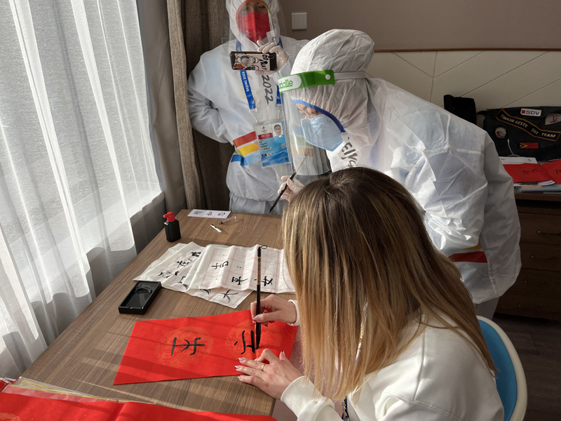 东帝汶也是葡语国家,鲍墨一一直使用葡语与东帝汶代表团负责人(兼联络官)Carolina交流。“在每日的工作中,我和团内的成员逐渐了解了彼此的日常生活、家庭和人生经历。我们在春节一起贴了春联,在开幕式上一起看了节目,也在场馆一起为选手加油……”鲍墨一说。