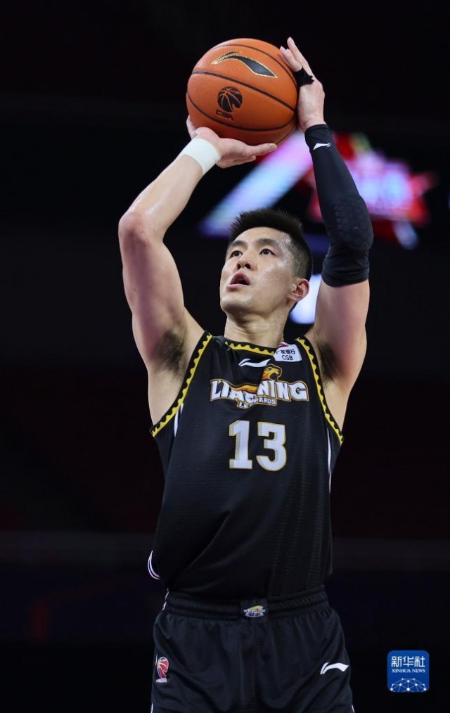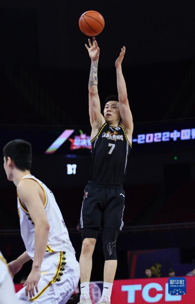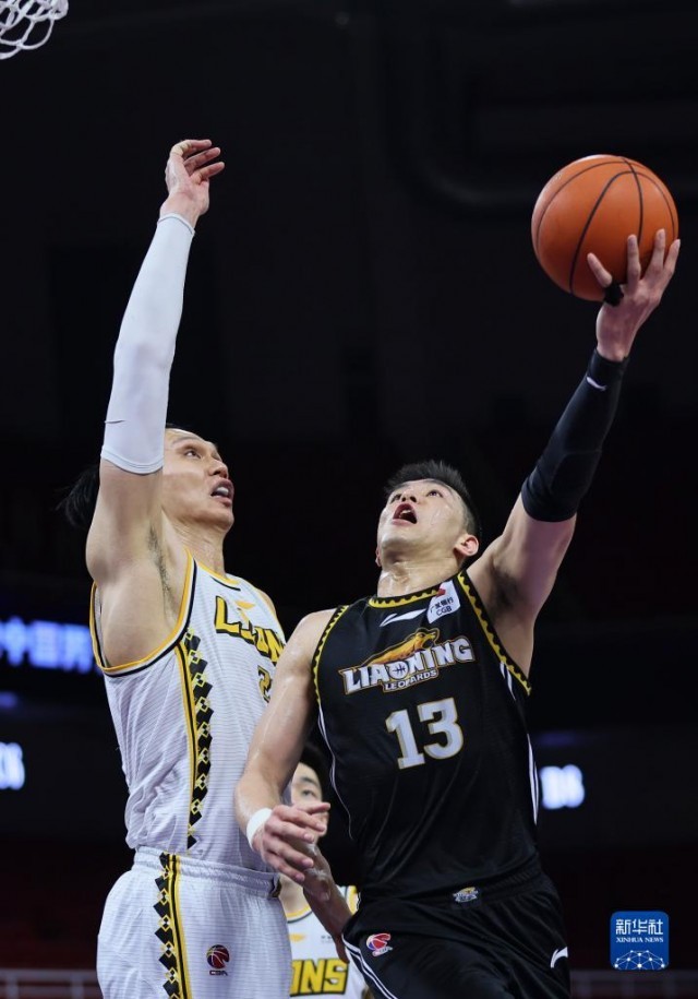 4月24日,辽宁本钢队球员张镇麟(右)在比赛中投篮。新华社发