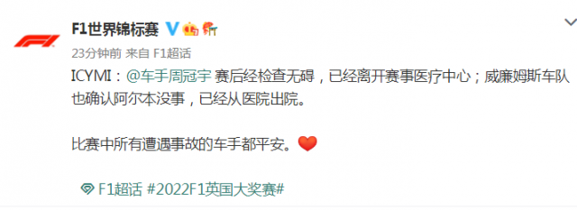 F1世界一级方程式锦标赛官方微博发布消息称