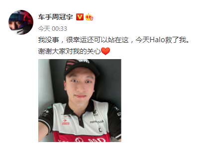 周冠宇也于4日凌晨发微博称