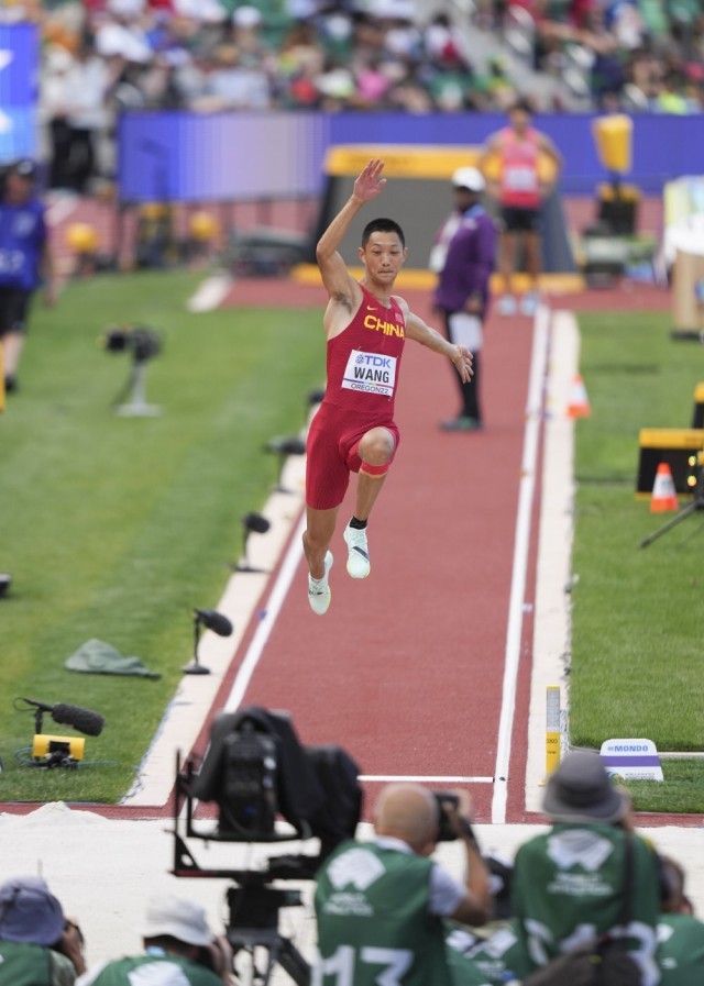 王嘉男在本届世锦赛上的最后一跳表现惊艳全场。虽然此前他的最好成绩只有8米03,落后于希腊选手、东京奥运会冠军滕托格洛的8米32。但最后一跳,他放手一搏并完成了8米36的惊世一跳。
