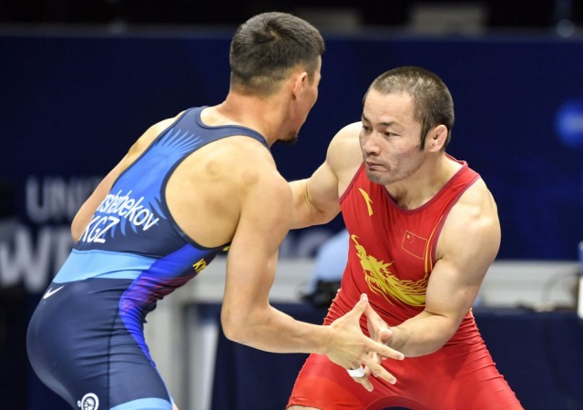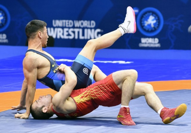 9月12日,中国选手托尔巴图(下)在比赛中。新华社发(普雷德拉格·米洛萨夫列维奇摄)