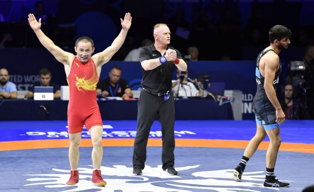 六分钟的鏖战后,当终场哨声响起,29岁的中国选手托尔巴图高举双臂庆祝时,电子记分牌上的比分定格于4:1,来自伊朗的内贾蒂颓然蹲在场地边上,托尔巴图赢得了一场没有争议的胜利。