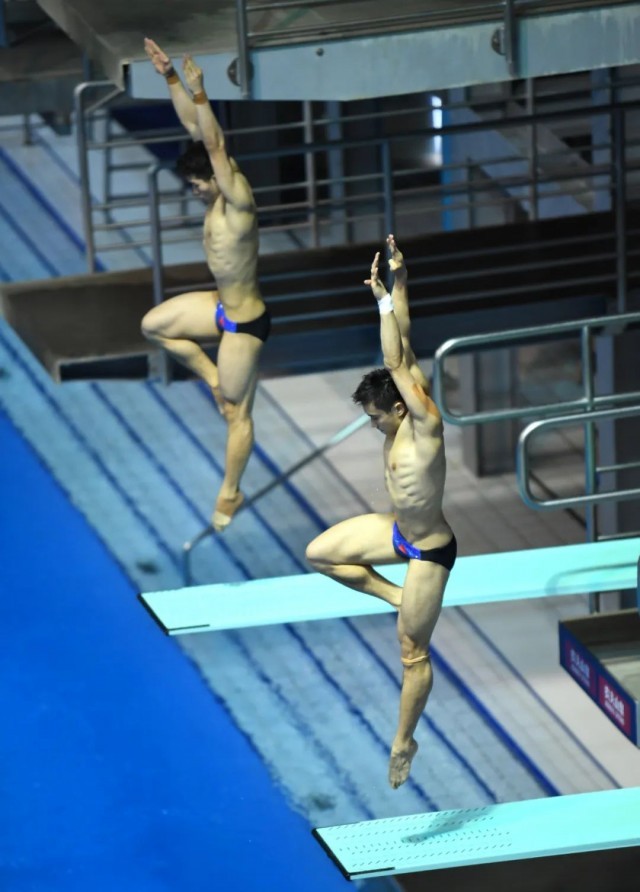 男子双人3米板决赛,曹缘/王宗源从8对组合中脱颖而出,成绩为442.68分。经过布达佩斯世锦赛后这段时间的训练,曹缘的状态一直在稳步提升,在前一日的单人比赛中,他获得了513.85分,这个成绩比世锦赛时更好。经过世锦赛的磨合,两人愈发默契。比赛中两人在第三跳难度系数3.4的5154B上出现了失误,仅得到63.24分,好在后面三跳没有受到影响,他们最终以442.68分的成绩夺冠。王宗源也实现了男子双人3米板的“三大赛”大满贯。亚军归属美国组合,成绩为354.00分。季军被澳大利亚组合摘得,成绩为349.41分。