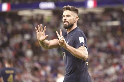 拥有豪华中前场的法国队,从比赛伊始就展开攻势。姆巴佩、登贝莱两翼齐飞,与吉鲁组成三叉戟,连续向波兰防线发起冲击。第44分钟,卫冕冠军终将优势兑现成进球,姆巴佩妙传助攻,吉鲁转身抽射,为球队取得1比0领先。凭借此球,吉鲁以52个国家队进球超越前辈亨利,成为法国队史头号射手。