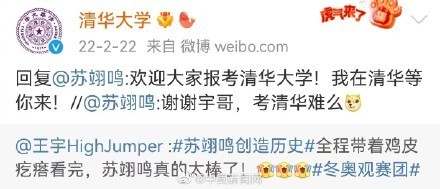 6月15日,国家体育总局科教司发布关于2023年优秀运动员本科保送推荐名单的公示,公示时间为2023年6月15日至21日。名单显示,单板滑雪运动员苏翊鸣保送推荐清华大学。(体育总局科教司)
