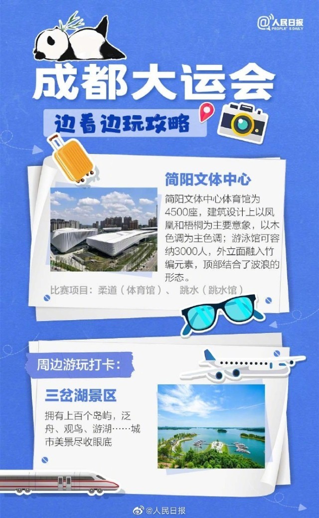 第31届世界大学生夏季运动会将于2023年7月28日至8月8日举办。今天,成都大运会倒计时1个月,想不想在观看比赛的同时,享受成都的美食和风土人情?戳图,看看体育场馆周边有啥值得游玩的景点吧!这个夏天,成都成就梦想!