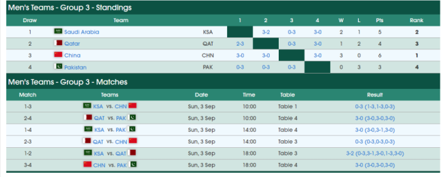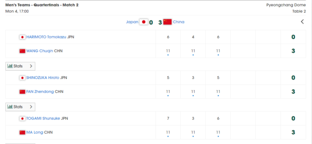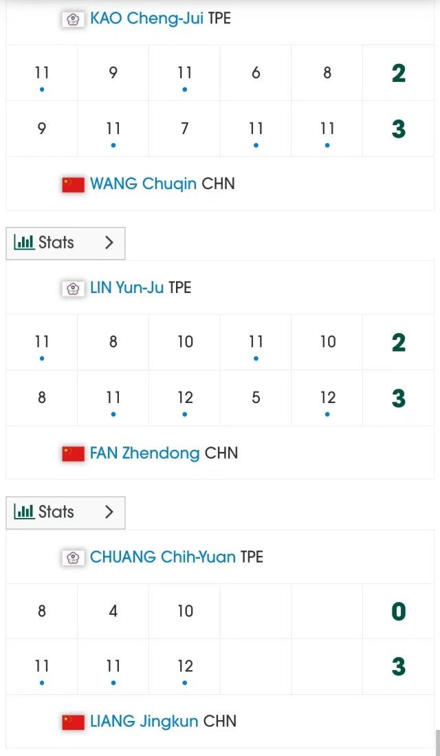 此后,以小组头名晋级的国乒男队迎战中国香港队,二者争夺一个淘汰赛席位。随着樊振东、王楚钦、马龙均以3:0战胜各自对手,中国队进军淘汰赛。