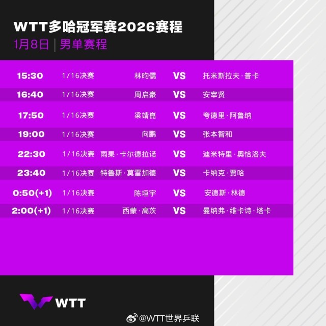 WTT多哈冠军赛今日拉开帷幕 国乒首日3人出战