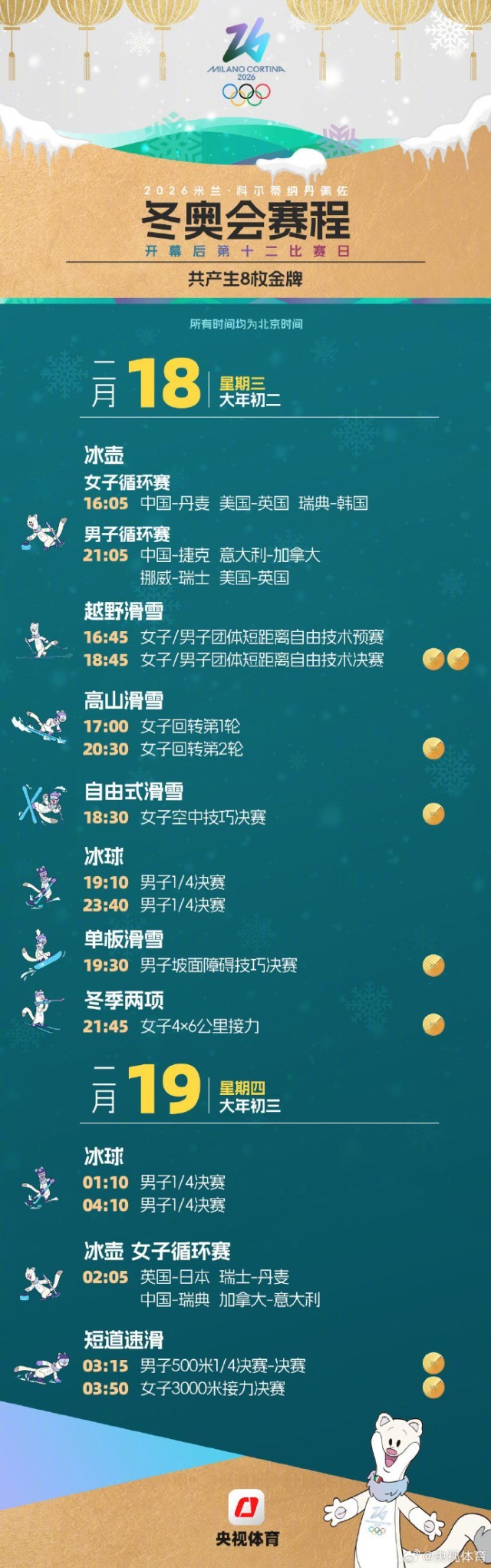 将产生116金 速速收藏米兰冬奥会赛程日历!
