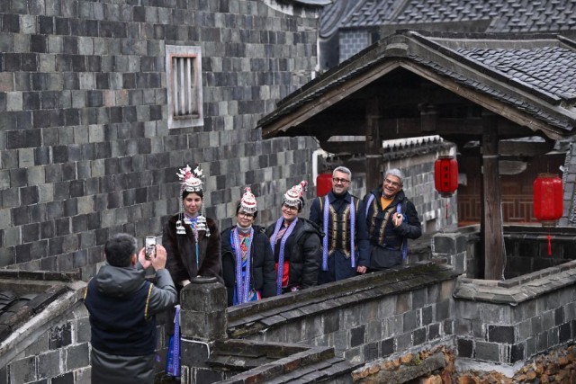 2025年2月20日,意大利客人在霞浦县溪南镇半月里村参观拍照。