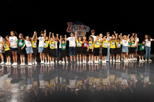 2025年7月18日,在意大利博洛尼亚,来自中国上海的绣球花小合唱团与意大利安东尼亚诺小合唱团的团员们一起向观众致意。2016年元旦,安东尼亚诺小合唱团首次赴华演出,受到中国观众热烈欢迎。近年来,他们持续推出中文歌曲。2025年是安团与中国观众结缘的第十年。