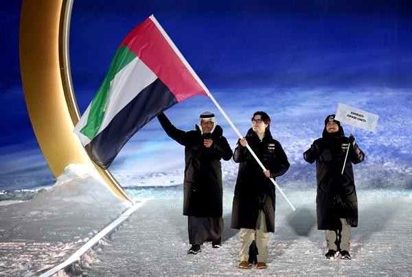2月6日,意大利利维尼奥,2026年米兰-科尔蒂纳冬奥会开幕式上,阿联酋旗手亚历克斯·阿斯特里奇率队入场。