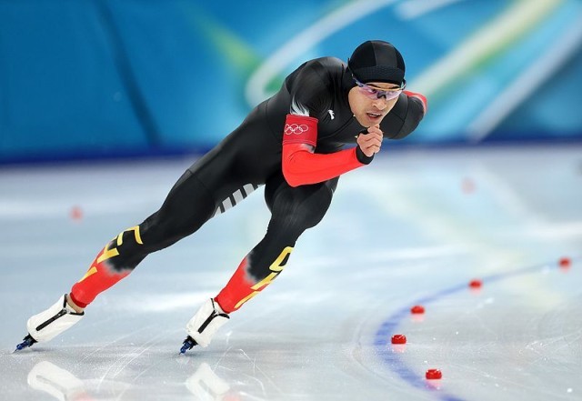宁忠岩在11日的米兰冬奥会速度滑冰男子1000米比赛中。视觉中国供图