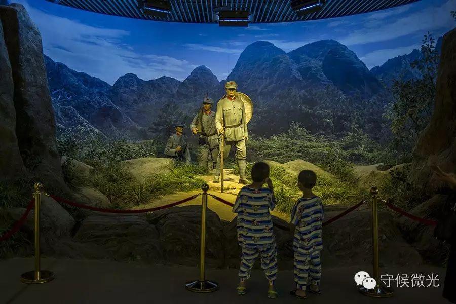 8月26日,江西兴国,苏区干部好作风纪念馆内,两个少年站在“梅岭三章”的实景蜡像前。李隽辉/摄