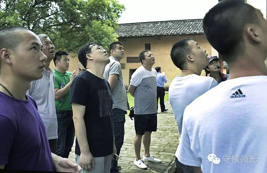 8月28日,江西瑞金叶坪,毛泽东故居前,参观者在听身着红军服的工作人员讲解。赵青/摄