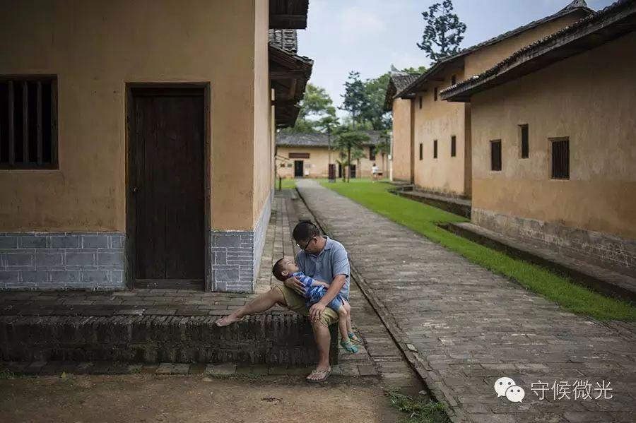 8月28日,江西省瑞金叶坪,革命旧址群,一位父亲怀抱睡着的孩子。李隽辉/摄