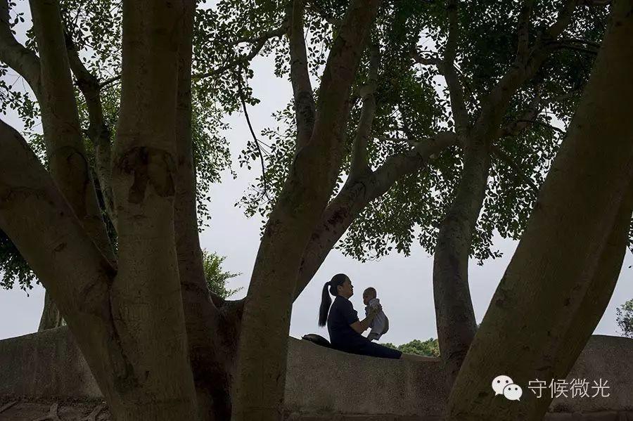 8月28日,江西于都,于都河“长征第一渡口”旁,一位母亲带着孩子在树荫下玩耍。李隽辉/摄