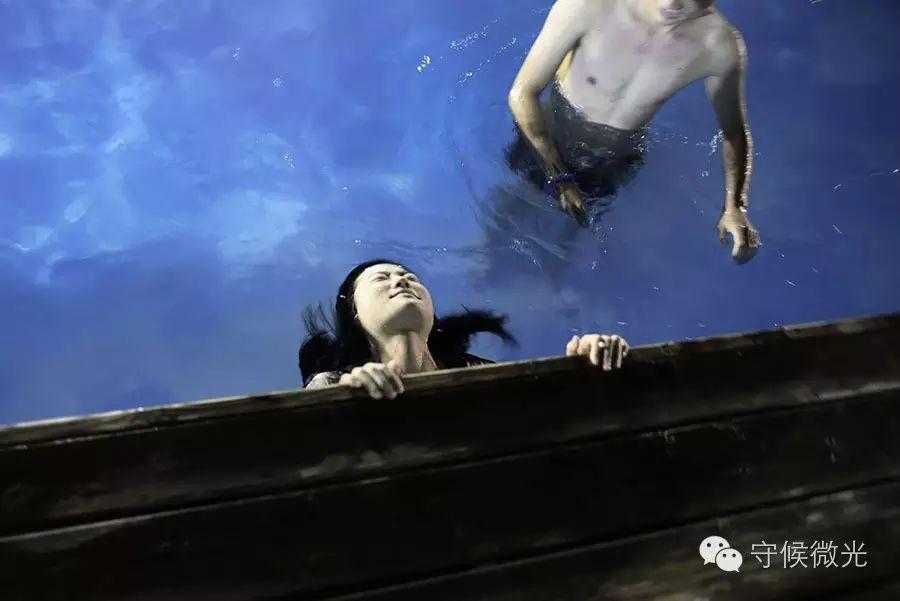 8月27日晚,江西瑞金,中华苏维埃纪念园内红五星欢乐水世界,赖蕾正和弟弟练习游泳。赵青/摄