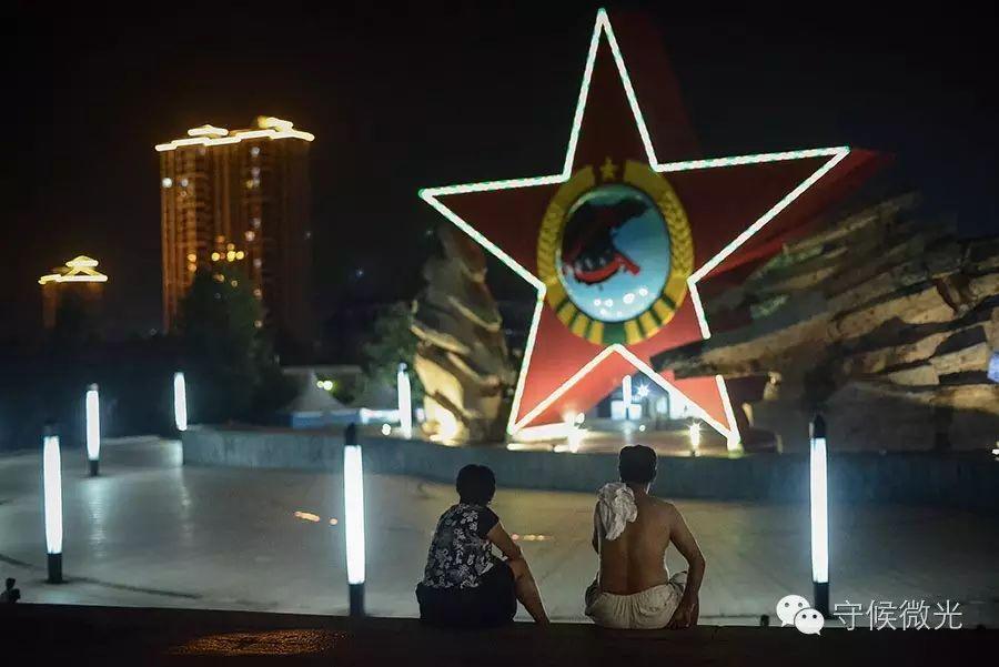 8月27日晚,江西瑞金,中华苏维埃纪念园内红五星广场前,市民在台阶上休息。王婷舒/摄