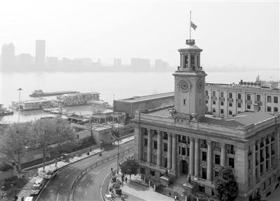 4月4日,武汉市举行哀悼活动,表达对抗击新冠肺炎疫情斗争牺牲烈士和逝世同胞的深切哀悼。图为武汉江汉关大楼下半旗志哀。 新华社记者 熊琦摄