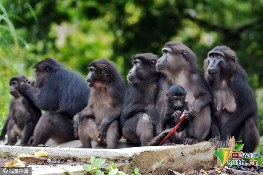 印尼黑猩猩濒危 小猩猩手拿牙刷萌萌哒