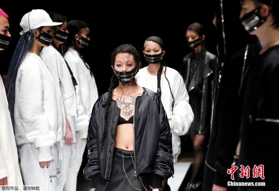 3月22日,日本东京,2017东京秋冬时装周上演另类走秀,模特嘴“被封”。