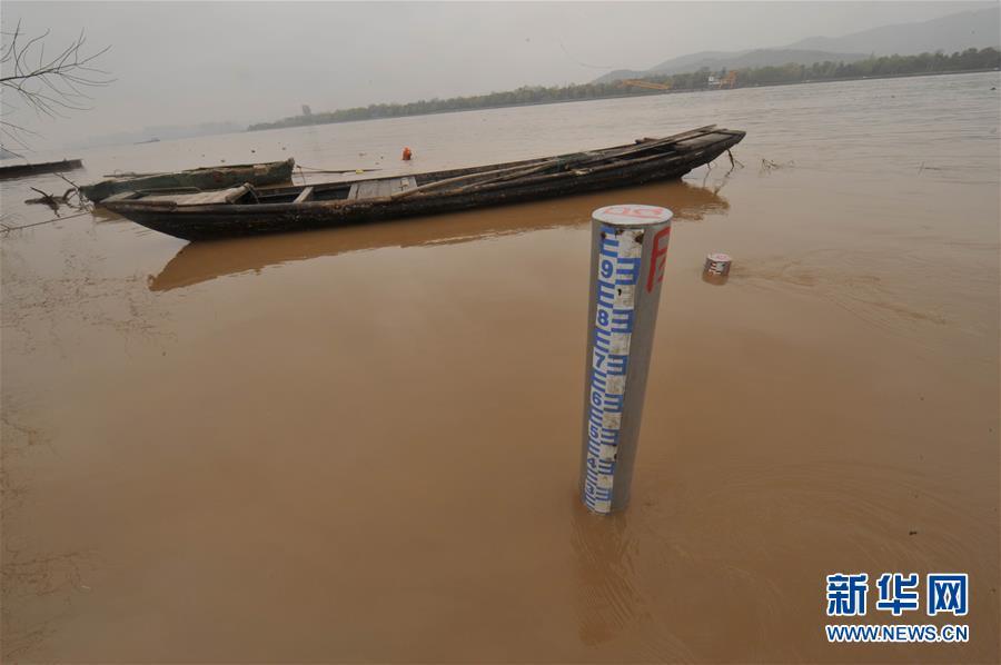 长沙水文站在湘江边设置的水位标杆被上涨的江水包围(3月23日摄)。