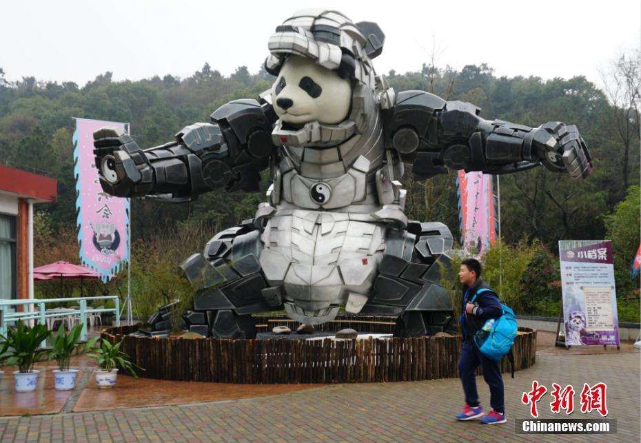 3月23日,一个高7米重8吨的巨型“熊猫”——太极熊猫亮相无锡市动物园,巨大的“身躯”置身广场中很有架势。据悉,该“熊猫”全身上下用了1000多个零件,整个制作工程超过5000个小时。 孙权 摄