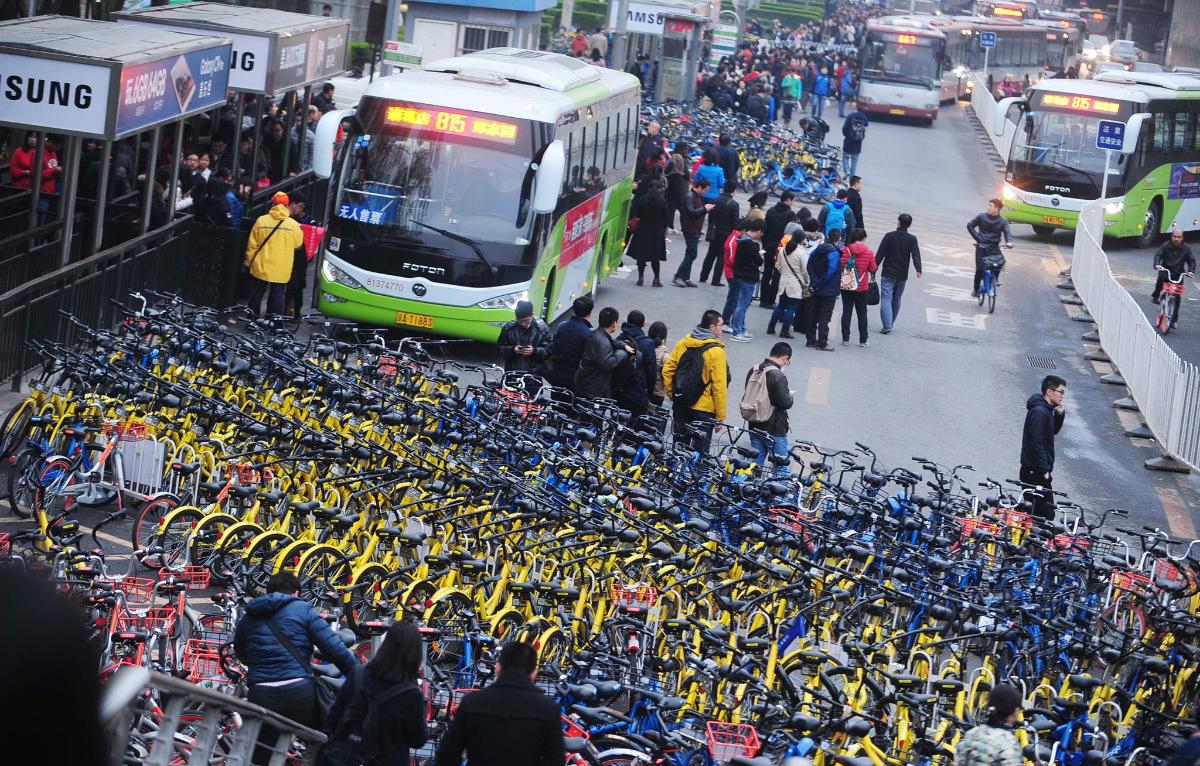 北京上千共享单车围住公交车站 公交进站难