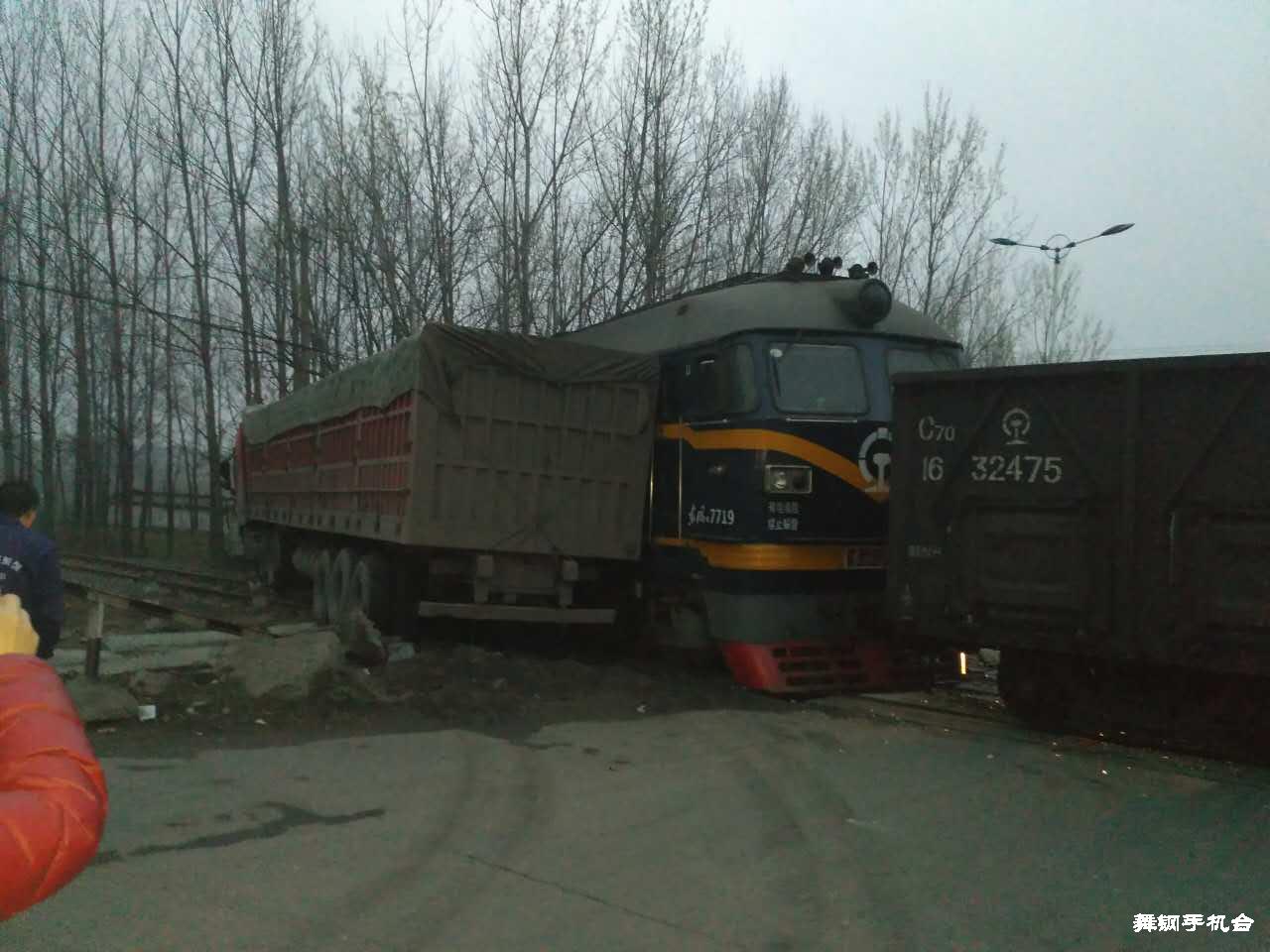 河南一列火车撞上货车脱轨