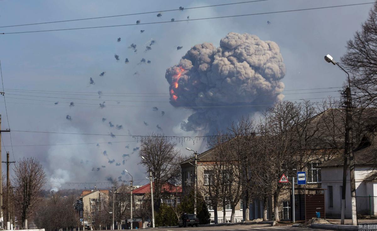 乌克兰一弹药库起火爆炸 现场腾起“蘑菇云”