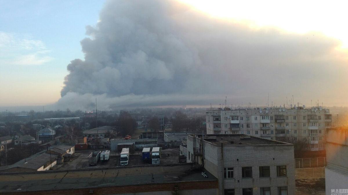 乌克兰一弹药库起火爆炸 现场腾起“蘑菇云”