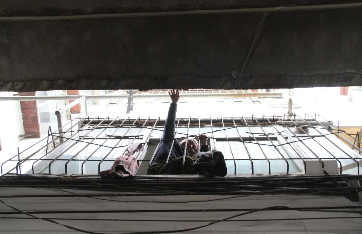 家住三单元的一位女士告诉记者,这栋楼距离高架桥实在是太近了,“我们楼上伸出胳膊去就能够着栏杆。”图片来源:陈宁/视觉中国