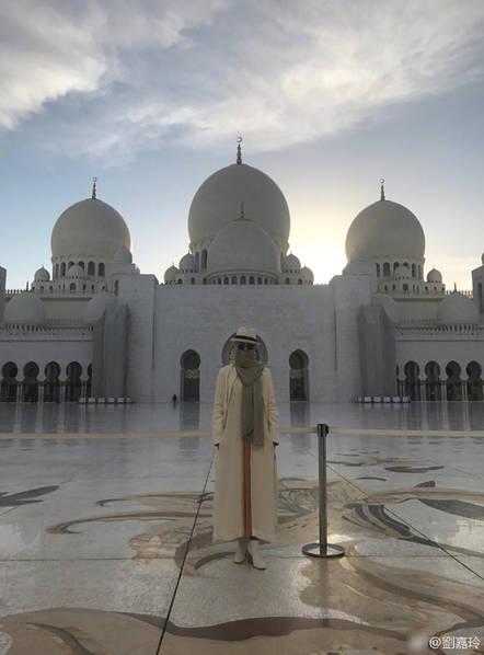 在迪拜都市里的刘嘉玲,包得浑身看不到几块肉,也坚持穿着白色高跟鞋。