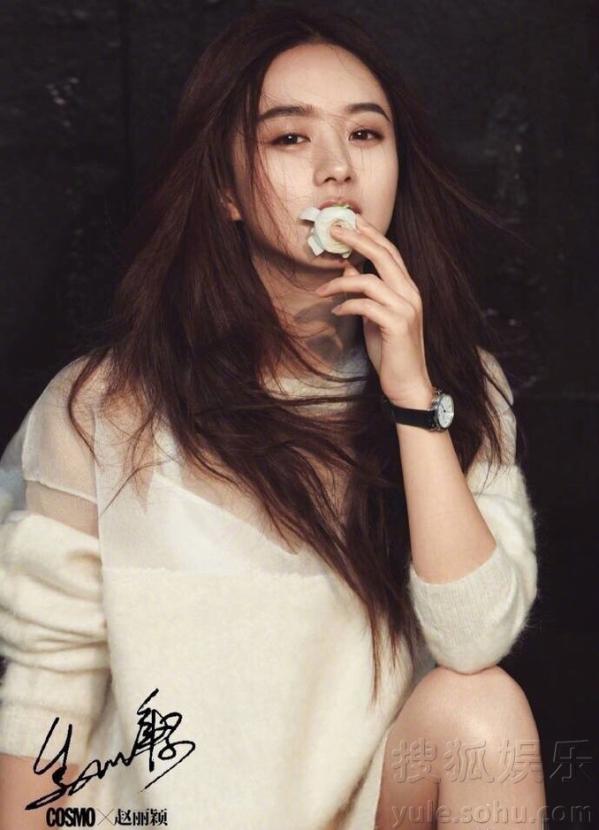 赵丽颖散落着头发,眼神迷离,慵懒而性感。