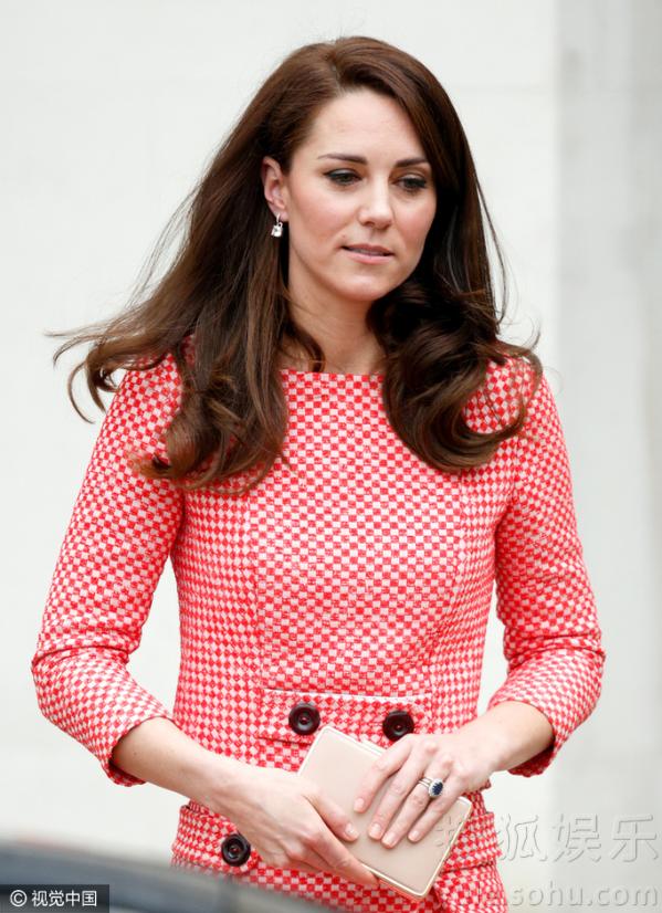 凯特王妃一袭粉裙,十分减龄。