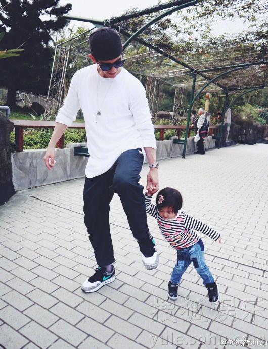 父女俩开心玩耍,咘咘很活泼。