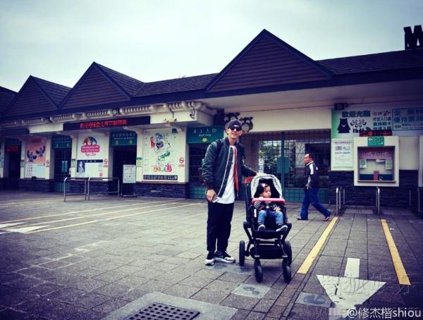 父女俩在动物园门口十分有爱。