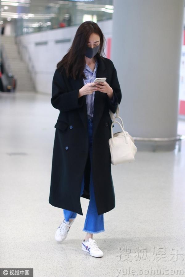 米露边玩手机边前行。