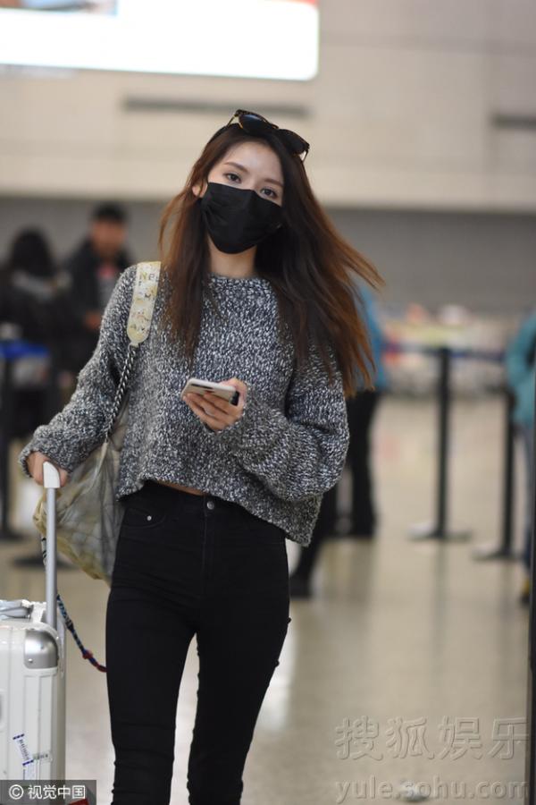 张予曦身着时尚短毛衣现身。