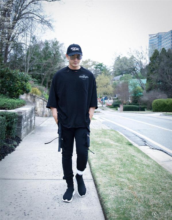 腾讯娱乐讯 天生自带魔力的黑色一直是时尚尖端的宠儿,一身all black行走在街头的黄晓明定义着潮帅不羁的自我世界,谁说成熟男士不可以“离经叛道”,墨镜下的冷酷 face是时尚先锋的专属气场。不规则的金属拉链设计,镂空的黑T衣领和露出一截的白色棉袜,亮相的小心机解构了黑色的深沉,格调飞扬随性。高段位的时尚,就如这般每一件单品都永不过时,又毫不费力。