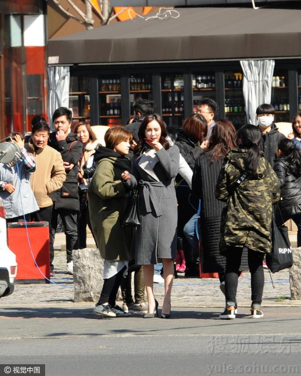 工作人员为杨幂整理服装。